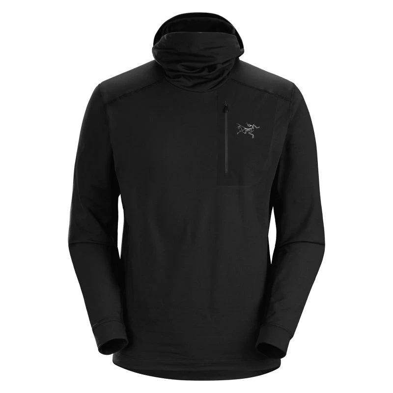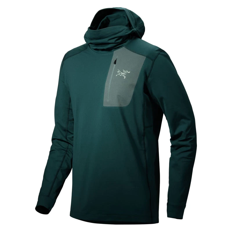 A base layer is your system’s foundation. It needs to perform and it needs to be comfortable. Focused for lower output activities in cool temperatures, and made from our brushed Torrent™ stretch polyester, the Rho LT hoody delivers moisture transport, light warmth, and next-to-skin comfort. Its trim fit maximizes fabric performance and layers easily, a chest pocket is sized to secure a smartphone, and the hood provides options – neck warmer, traditional hood, or full coverage balaclava.