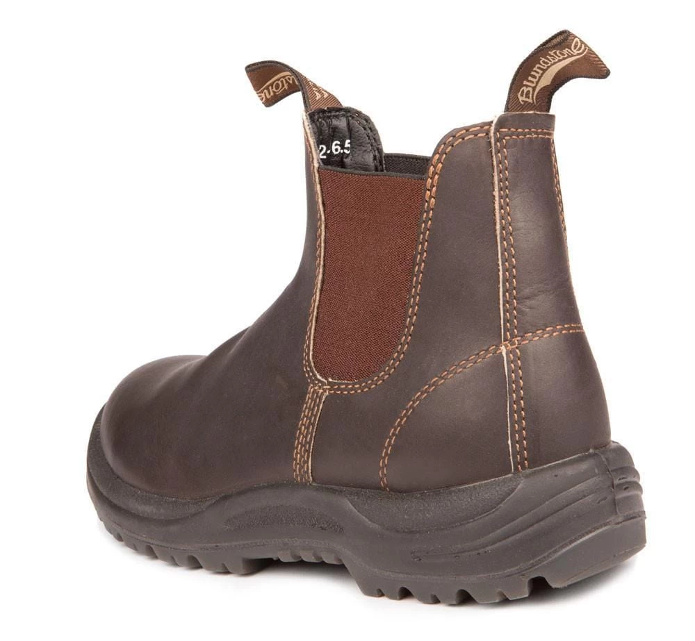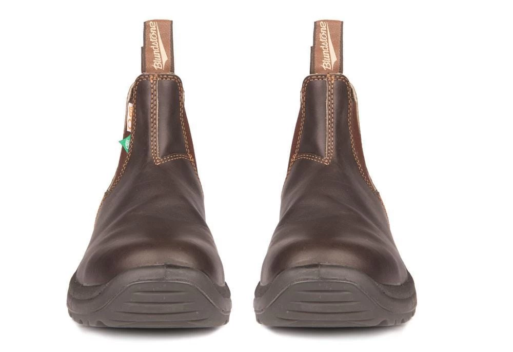 This work boot checks all the safety boxes so you can focus on the job at hand. Blundstone protective steel toe safety and dry all-day comfort, even on concrete. Flexible, comfortable and pull-on, kick-off easy to keep mud and debris off car mats, indoor carpets and new floors. Lightweight and durable with a sole resistant to electrical, chemical and acid dangers. CSA approved.