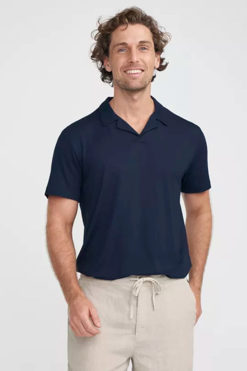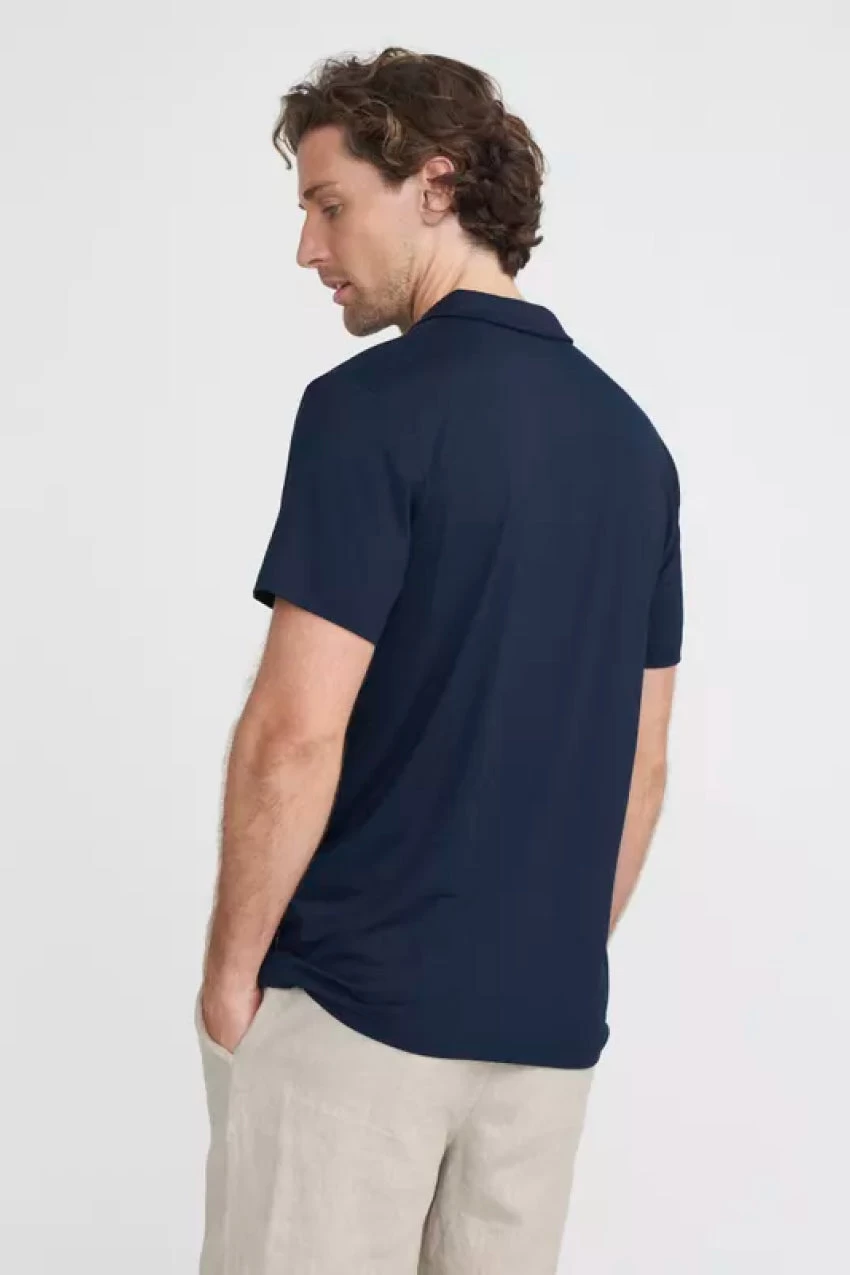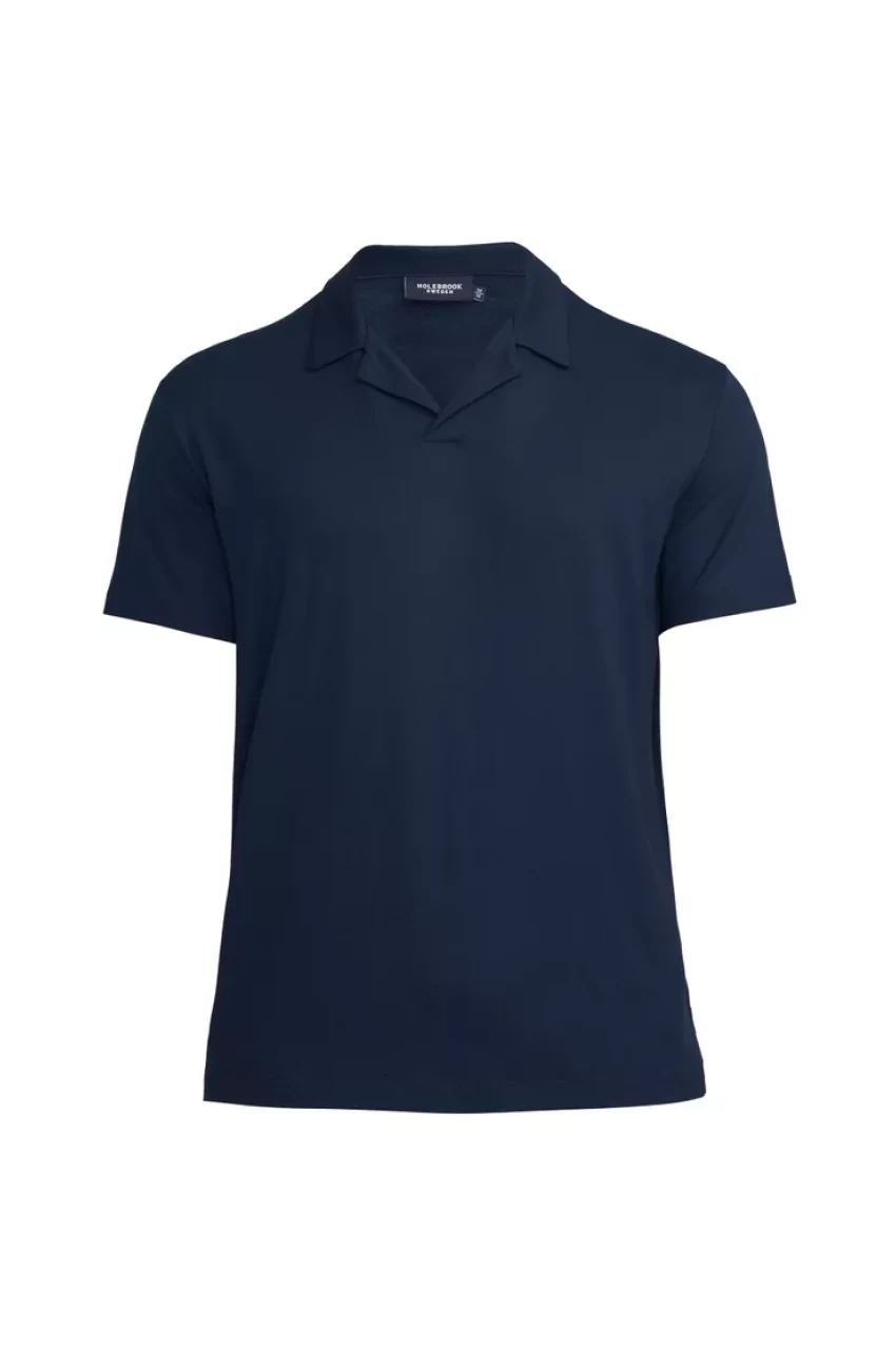 Dressy t-shirt with short sleeves and collar. Simple design with small slits at both sides. The soft quality gives the garment a nice drape.Â