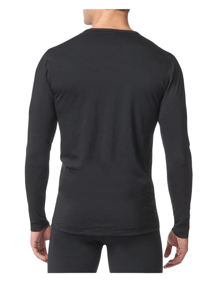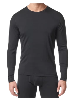 This long sleeve, crew neck shirt is 100% merino wool jersey fabric that uses unique yarns from New Zealand to create a comfortable and warm wool garment. This winter shirt is great as a base layer for warmth or as a casual shirt and features full length set in sleeves with a 2 needle hem on the sleeves and the bottom.