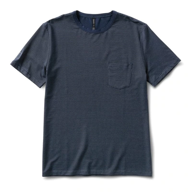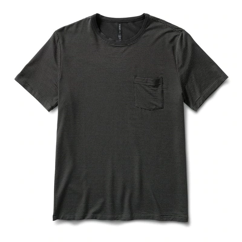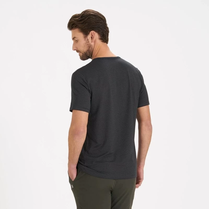 A striped performance knit tee is usually a good choice. With 4-way stretch, moisture-wicking, odor prevention, and a convenient front pocket, our Linear Tee is perfect for yoga, training, and running.