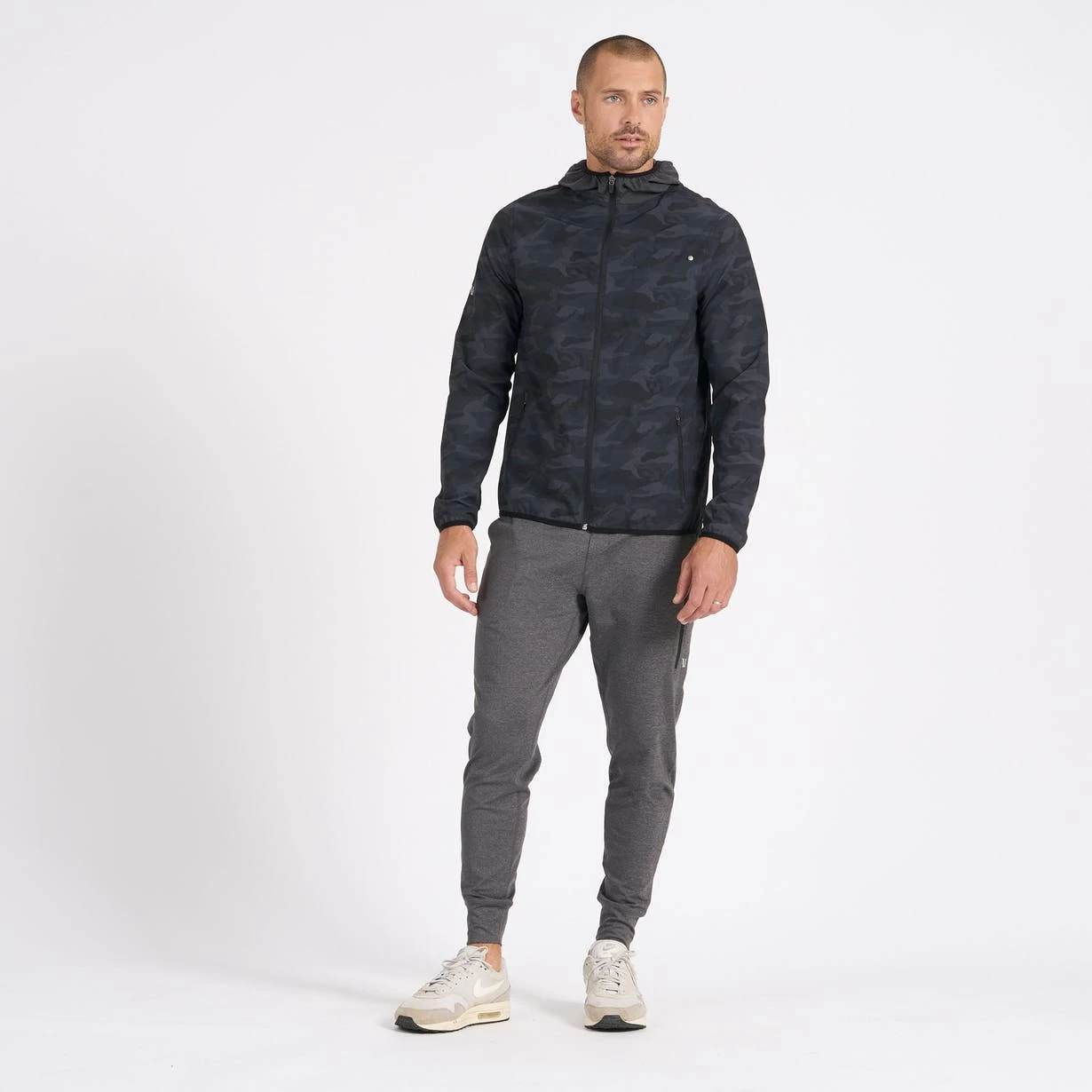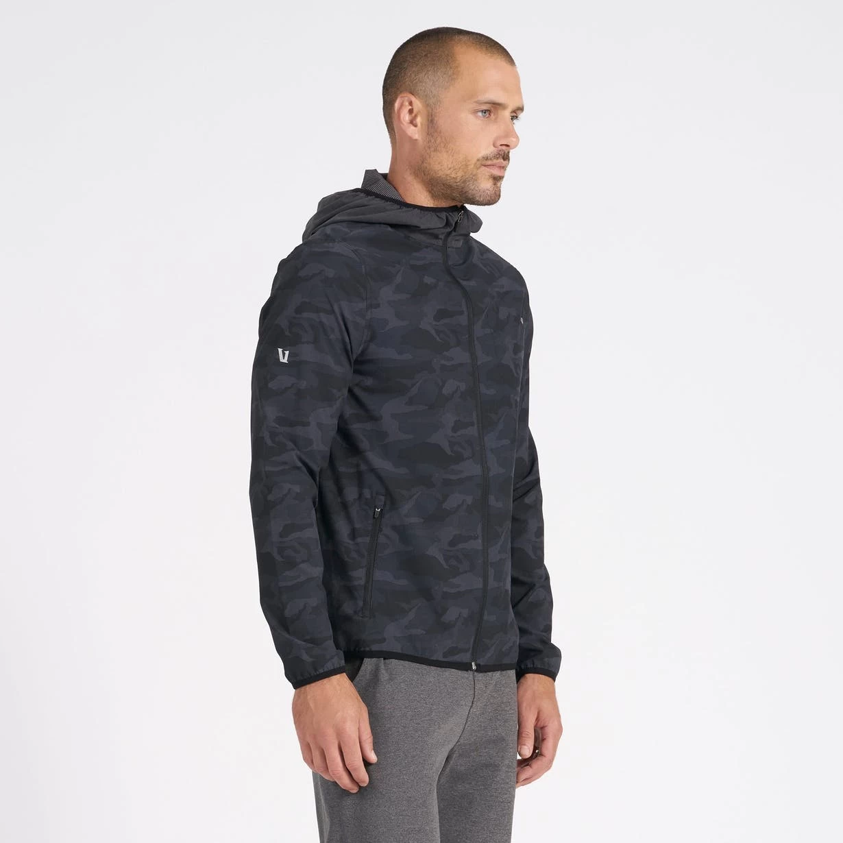 Take on the great outdoors in our men’s hooded Outdoor Trainer Shell jacket. The four-way stretch lightweight performance material is moisture wicking and has multiple zip pockets and a reflective logo so you’re covered on all your outside adventures.